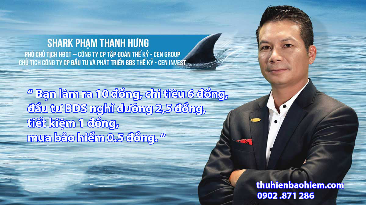 - Shark Phạm Thanh Hưng từng nói “Nếu bạn làm ra 10 đồng ,chi tiêu 6 đồng , đầu tư bất động sản nghỉ dưỡng 2.5 đồng , tiết kiệm 1 đồng , mua bảo hiểm 0.5 đồng ”